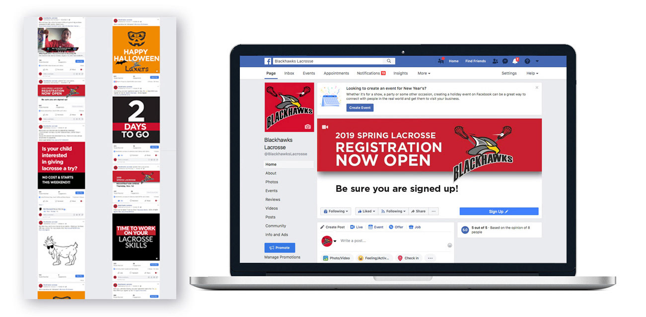 Welcome to our collaboration with Blackhawks Lacrosse Sports Program! At Kinnelon Design, we're passionate about supporting nonprofits in achieving their goals and promoting their mission. For Blackhawks Lacrosse, we partnered with them to develop a comprehensive social media and brand identity rollout strategy aimed at amplifying their presence and expanding their season roster. Through a targeted 3-month rollout plan, we implemented strategic changes including the creation and modification of Instagram, Facebook, and Twitter accounts, as well as providing guidance on email direction and template creation. The results were remarkable, with enrollments doubling in the first year alone. Join us as we explore the journey of transforming Blackhawks Lacrosse into a thriving and impactful organization.